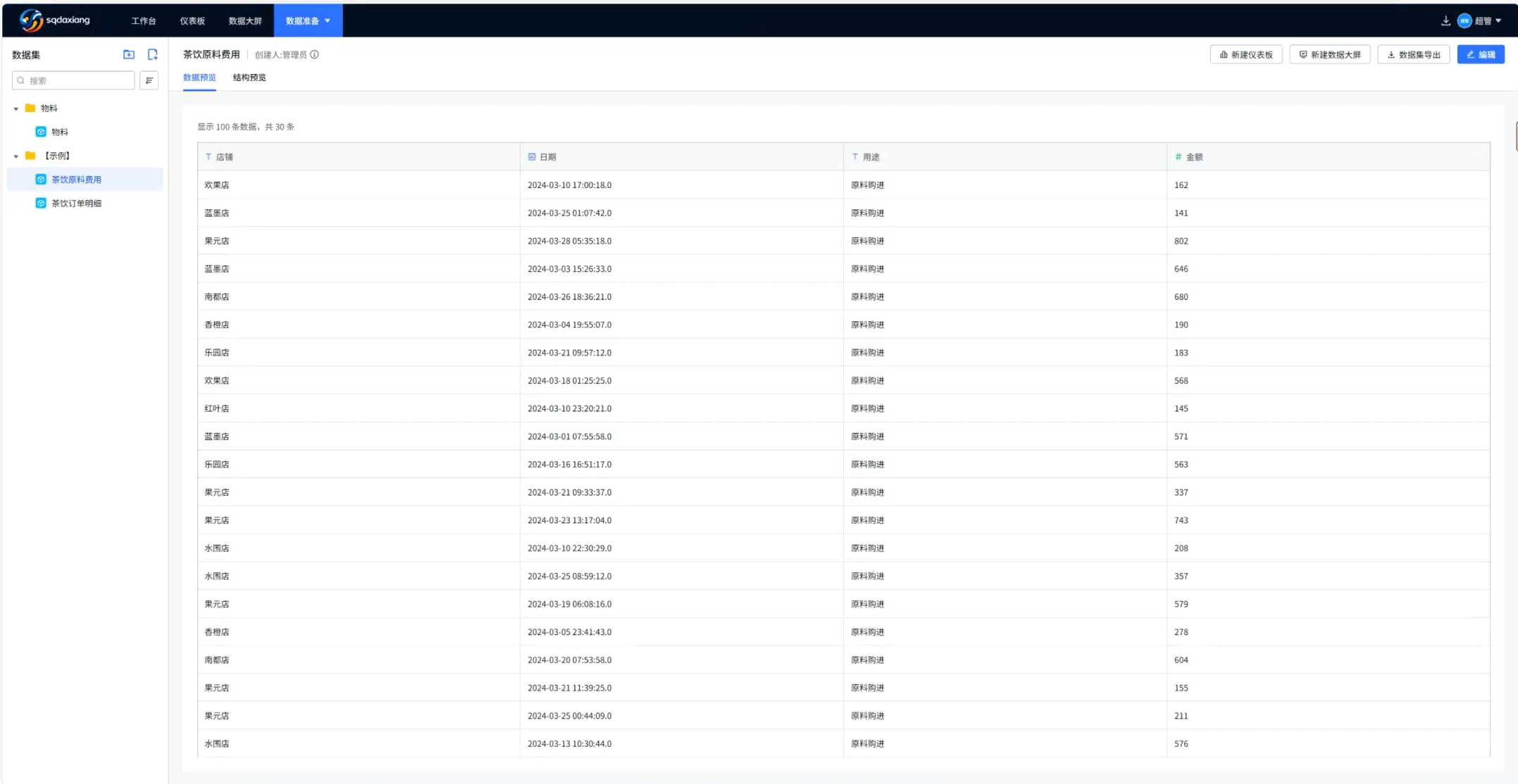 DataEase 支持丰富的数据源连接,能够通过拖拉拽方式快速制作图表,并可以方便地与他人分享。