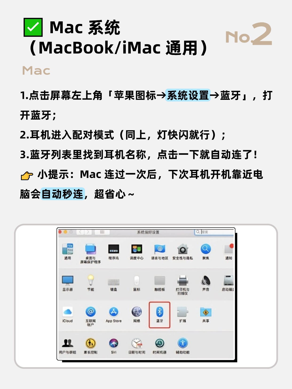 3.蓝牙列表里找到耳机名称,点击一下就自动连了!👉 小提示:Mac 连过一次后,下次耳机开机靠近电脑会自动秒连,超省心~