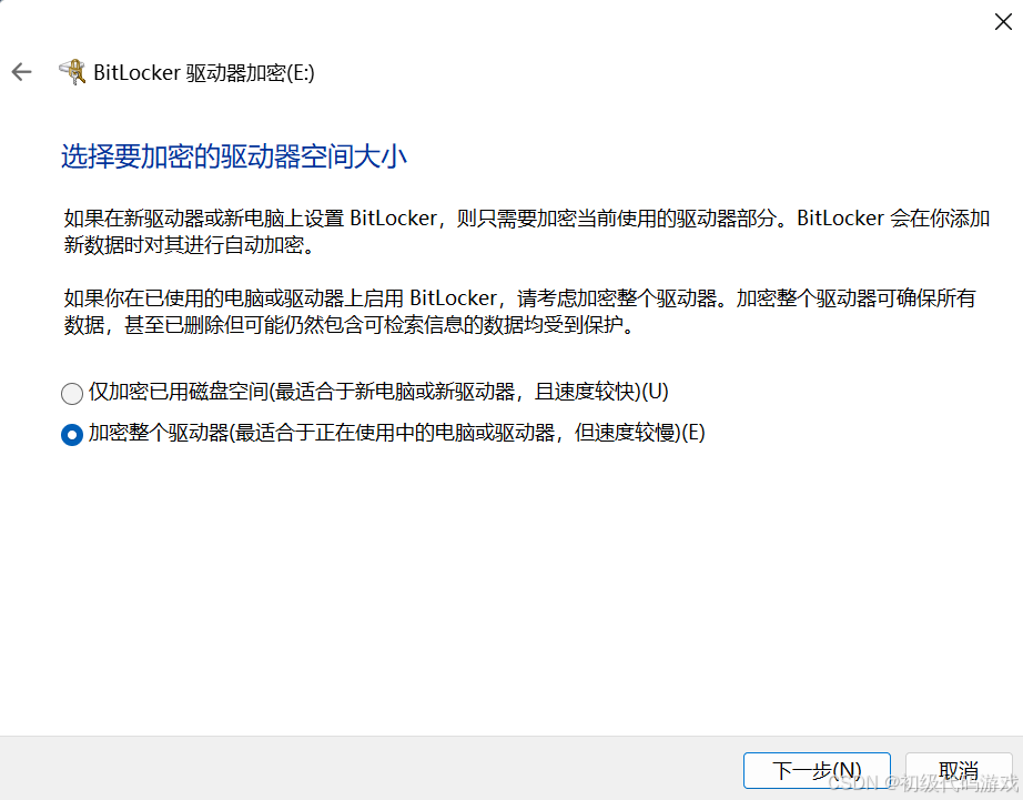 一定要加密所有空间,不能只加密已用空间。