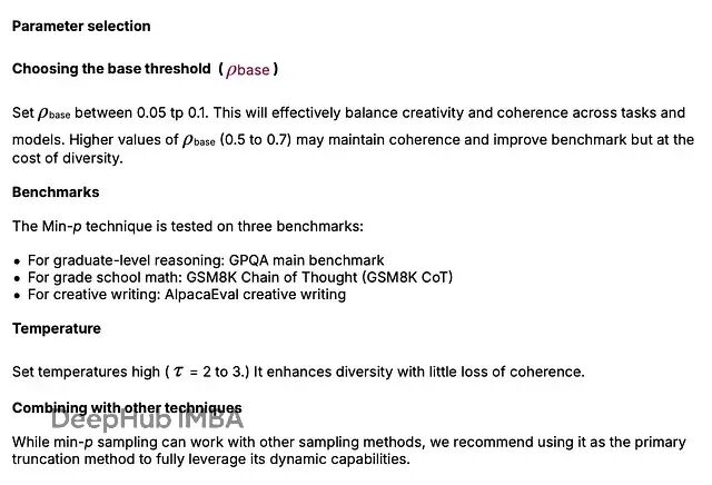 解决了长期困扰的"多样性-质量"权衡问题,min-p 算是生成式语言建模的一个进步。对既要高质量又要多样性的文本生成应用来说,这很有价值。