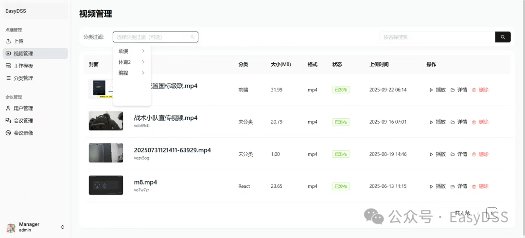 视频上传成功后,新版EasyDSS让“找视频”、“改视频”更高效: