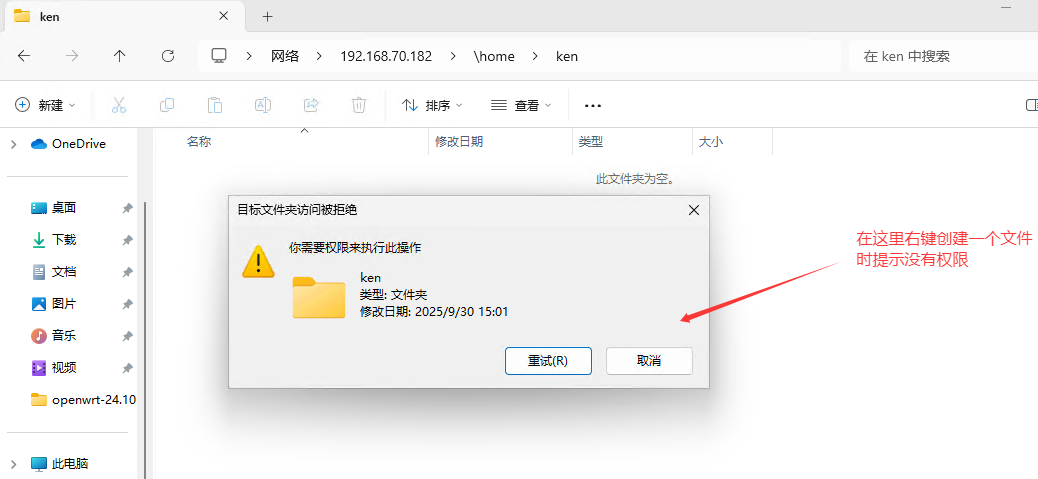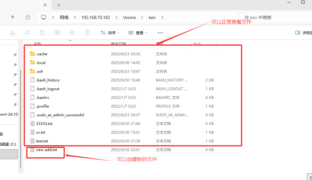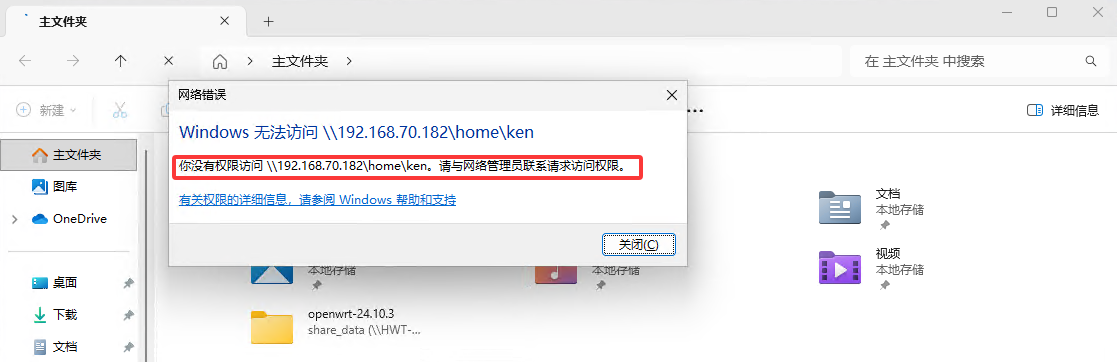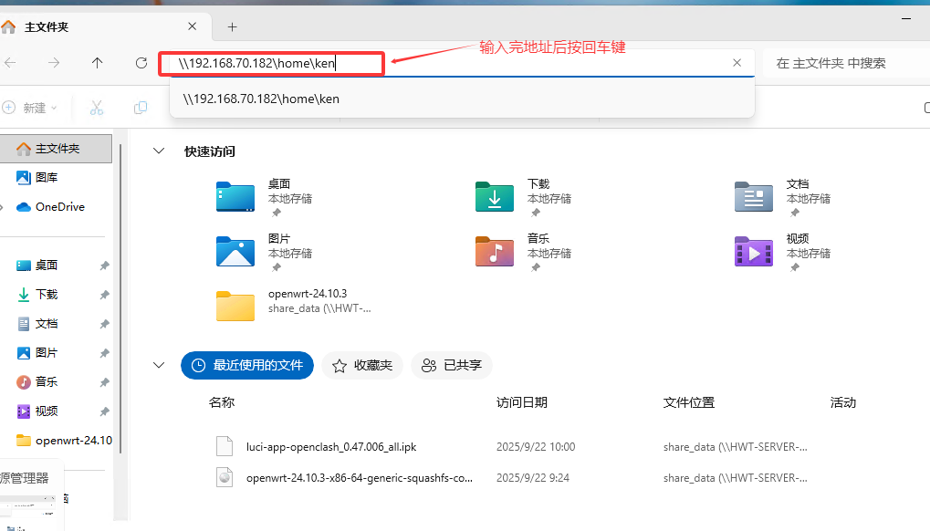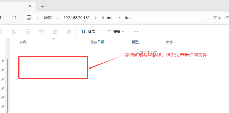 先在windows地址栏输入共享路径,看看是否能访问:\\192.168.70.182\home\ken