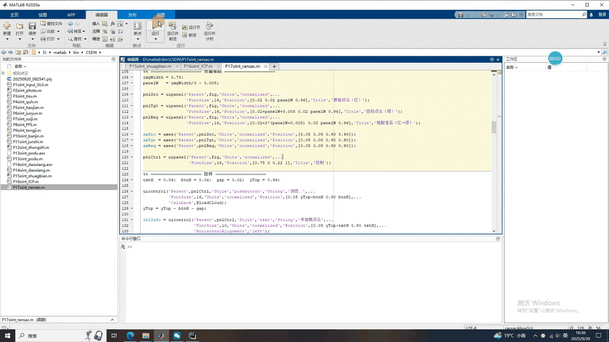 fig = figure('Name','RANSAC 粗配准工具','NumberTitle','off',...'MenuBar','none','ToolBar','none','Position',[100 100 1280 720]);%% ==================== 界面布局 ====================
