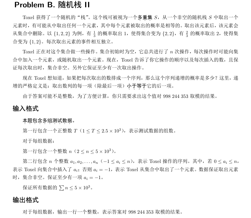 2025CCPC郑州邀请赛暨河南省赛 B. 随机栈 II 题解