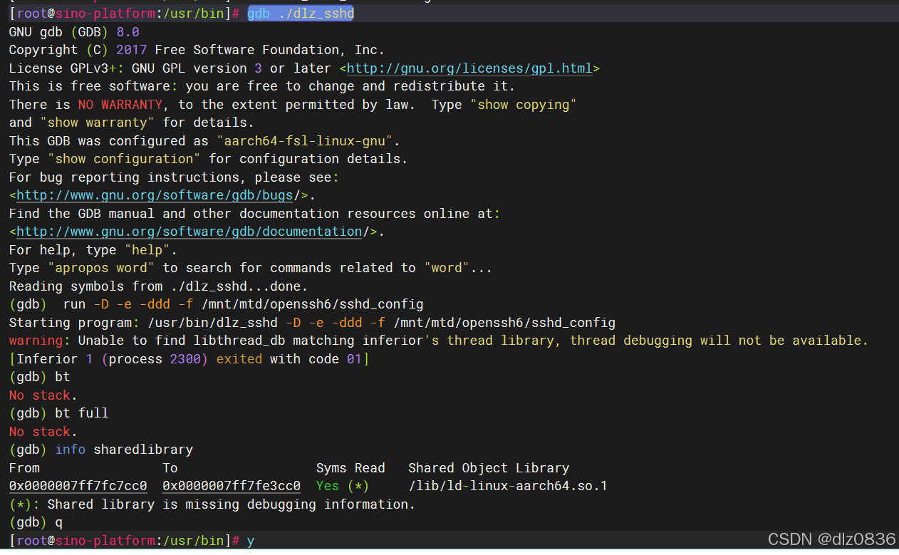 (gdb) run -D -e -ddd -f /mnt/mtd/openssh6/sshd_config