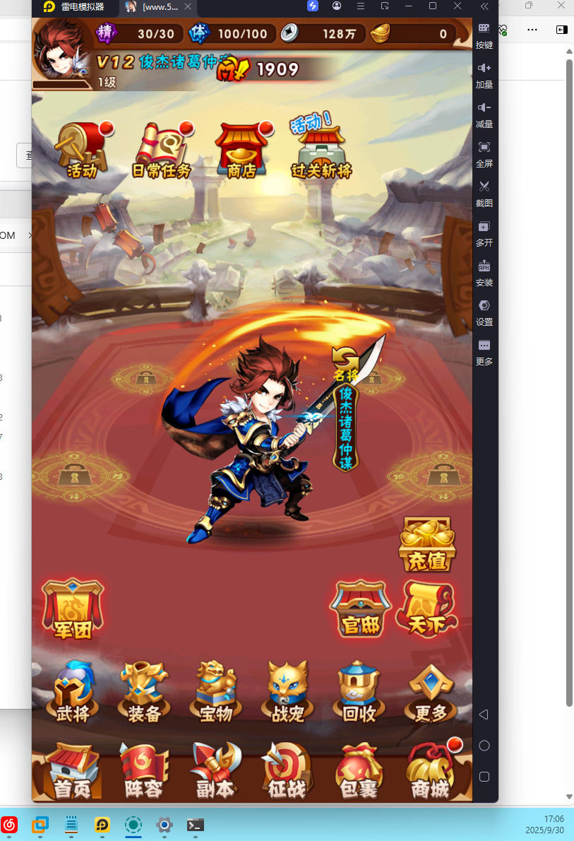 6、模拟器安装安卓客户端“[www.523play.com]192.168.200.128少年三国志.apk”进入游戏。