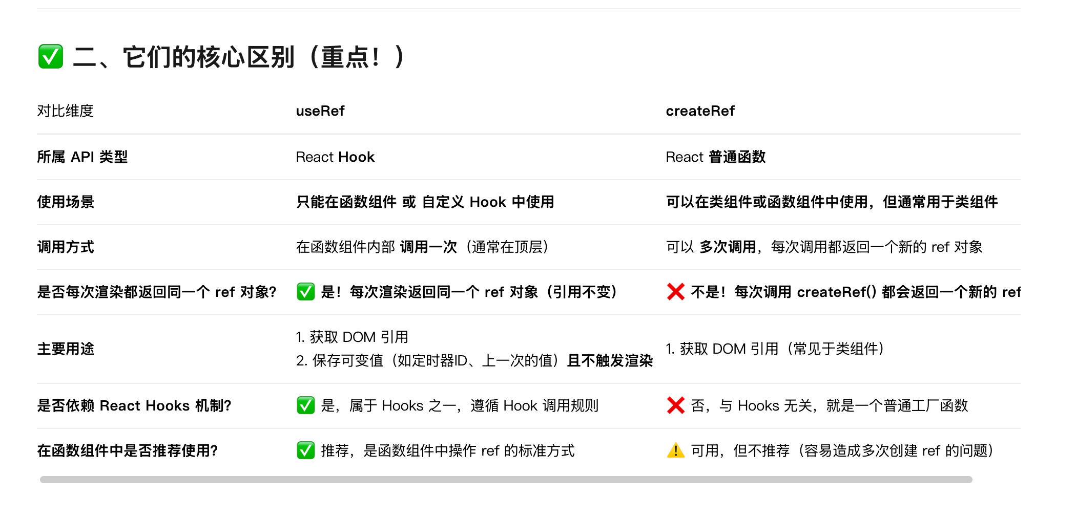✅ 六、总结:useRef 的原理和creactref区别
