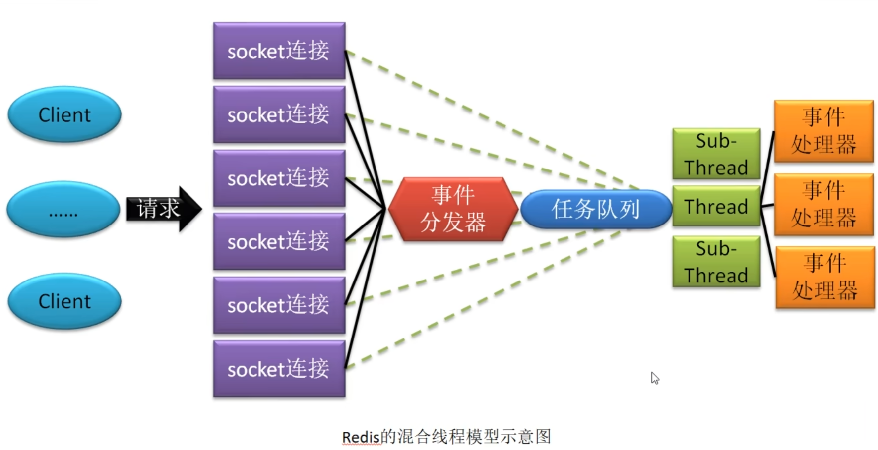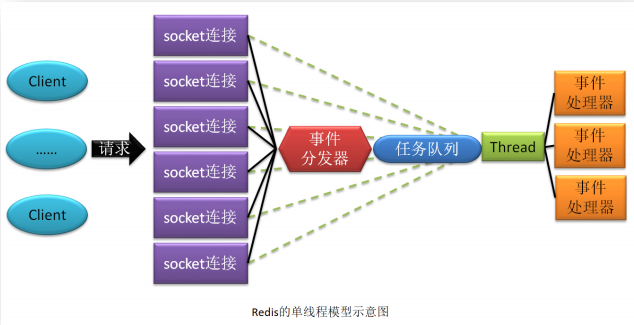 每个客户端若要向 Redis 提交请求,都需要与 Redis 建立一个 socket 连接,并向事件分发器注册一个事件。
