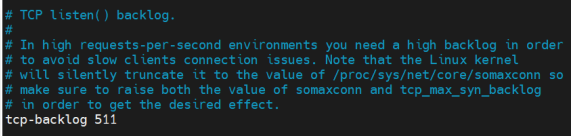 tcp-backlog 是一个 TCP 连接的队列,其主要用于解决高并发场景下客户端慢连接问题。这里设置的值就是这个队列的长度。该队列与 TCP 连接的三次握手有关。不同的 Linux 内核,backlog 队列中存放的元素(客户端连接)类型是不同的。