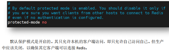 默认保护模式是开启的。其只允许本机的客户端访问,即只允许自己访问自己。