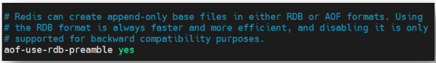 对于基本文件可以是 RDB 格式也可以是 AOF 格式。通过 aof-use-rdb-preamble 属性可以选择。其默认值为 yes,即默认 AOF 持久化的基本文件为 rdb 格式文件,也就是默认采用混合式持久化。