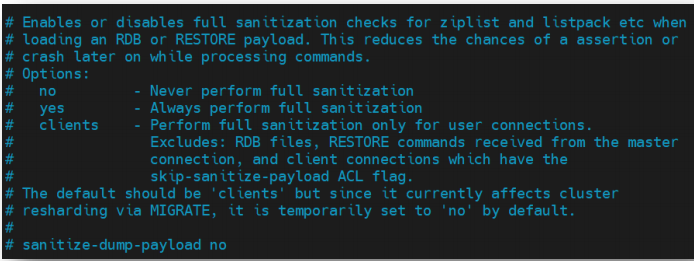 该配置用于设置在加载 RDB 文件或进行持久化时是否开启对 zipList、listPack 等数据的全面安全检测。该检测可以降低命令处理时发生系统崩溃的可能。其可设置的值有三种选择: