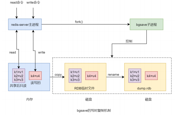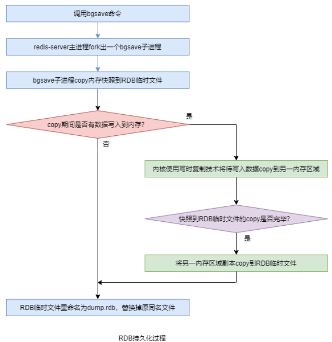 - bgsave 子进程在持久化时首先会将内存中的全量数据 copy 到磁盘中的一个 RDB 临时文件,copy 结束后,再将该文件 rename 为 dump.rdb,替换掉原来的同名文件。