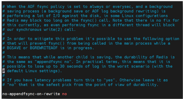 该属性用于指定,当 AOF fsync 策略设置为 always 或 everysec,当主进程创建了子进程正在执行 bgsave 或 bgrewriteaof 时,主进程是否不调用 fsync()来做数据同步。设置为 no, 双重否定即肯定,主进程会调用 fsync()做同步。而 yes 则不会调用 fsync()做数据同步。
