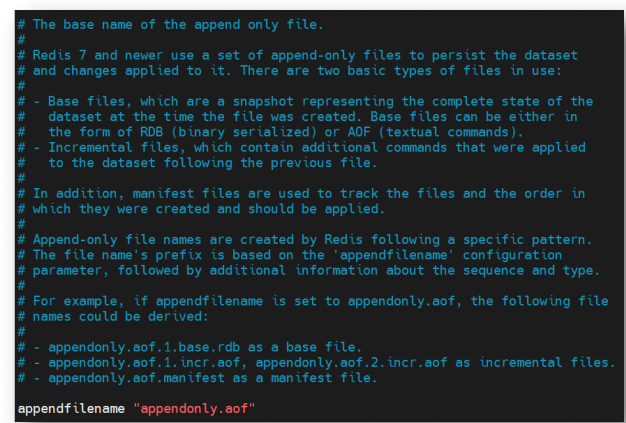 为了方便管理,可以专门为 AOF 持久化文件指定存放目录。目录名由 appenddirname 属性指定,存放在 redis.conf 配置文件的 dir 属性指定的目录,默认为 Redis 安装目录。