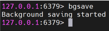 通过在 redis-cli 客户端中执行 bgsave 命令可立即进行一次持久化保存。不同于 save 命令的是,正如该命令的名称一样,background save,后台运行 save。