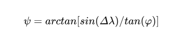 `ψ_A = arctan[sin(-16°) / tan(40°)]`