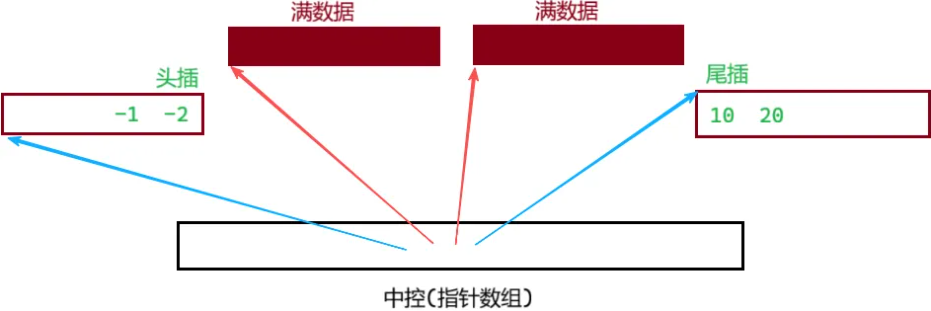 中控指针数组满了,像 vector 一样扩容+拷贝数据即可
