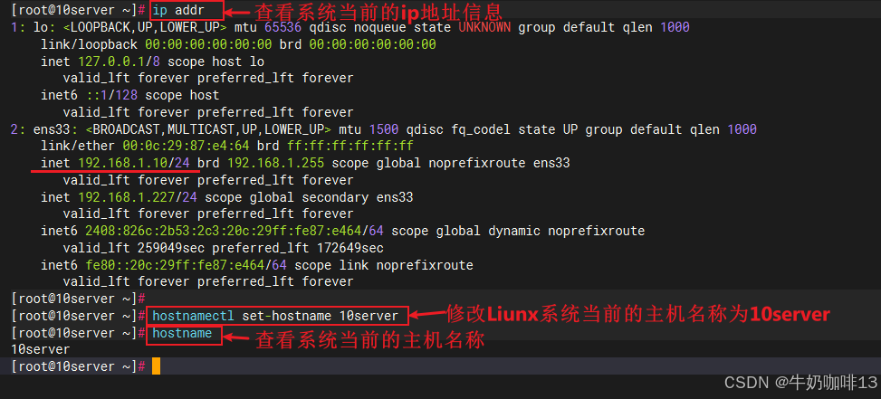 hostnamectl set-hostname 10server#2-让修改的主机名称生效