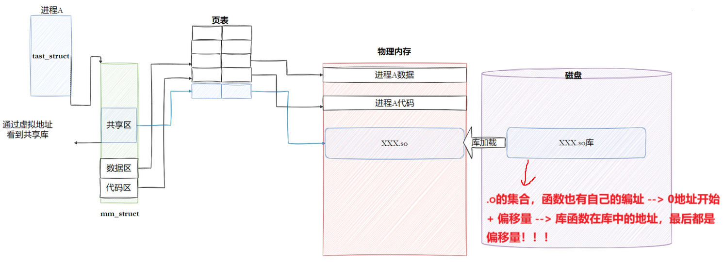 - 而且:整个调用过程,是从代码区跳转到共享区,调⽤完毕在返回到代码区,整个过程完全在进程地址空间中进行的.