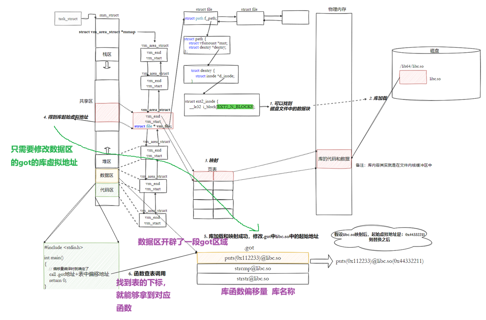 - 所以:访问库中任意方法,只需要知道库的起始虚拟地址+方法偏移量即可定位库中的方法