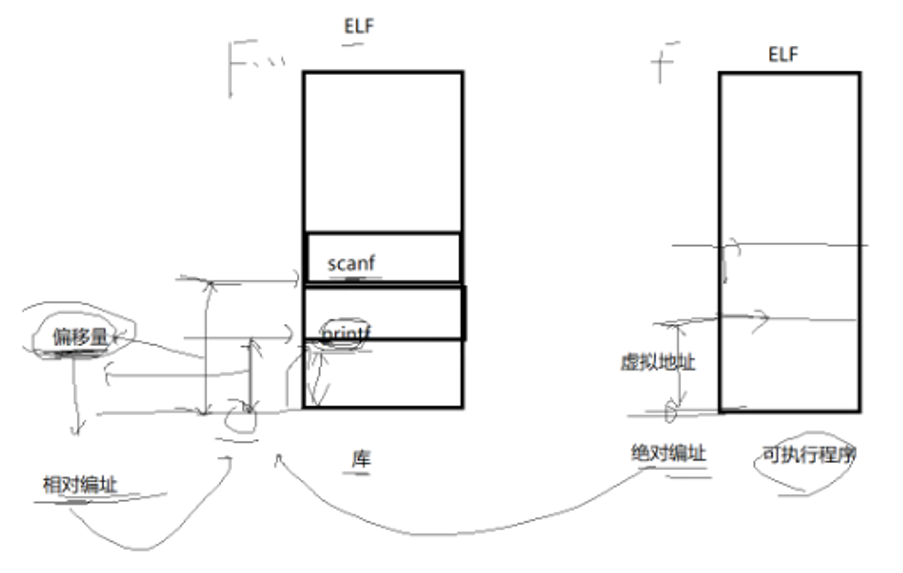 - 库也可以调用其他库!!因为库之间也能存在依赖.那么如何做到库和库之间互相调⽤也是与地址⽆关的呢?