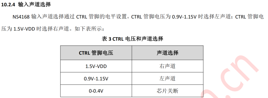 7.左右声道可选,通过 CTRL 管脚电平设置
