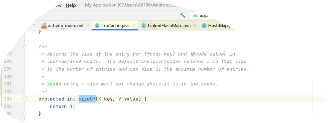 默认情况下,缓存大小为entry键值对的数量。可以覆盖sizeof方法使用不同单位测量缓存大小,例如可以使用字节数测量bitmap的大小。