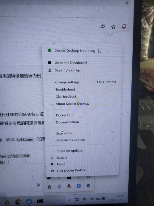 - 打开 Docker Desktop 设置同样点击任务栏右下角的 Docker 图标,选择