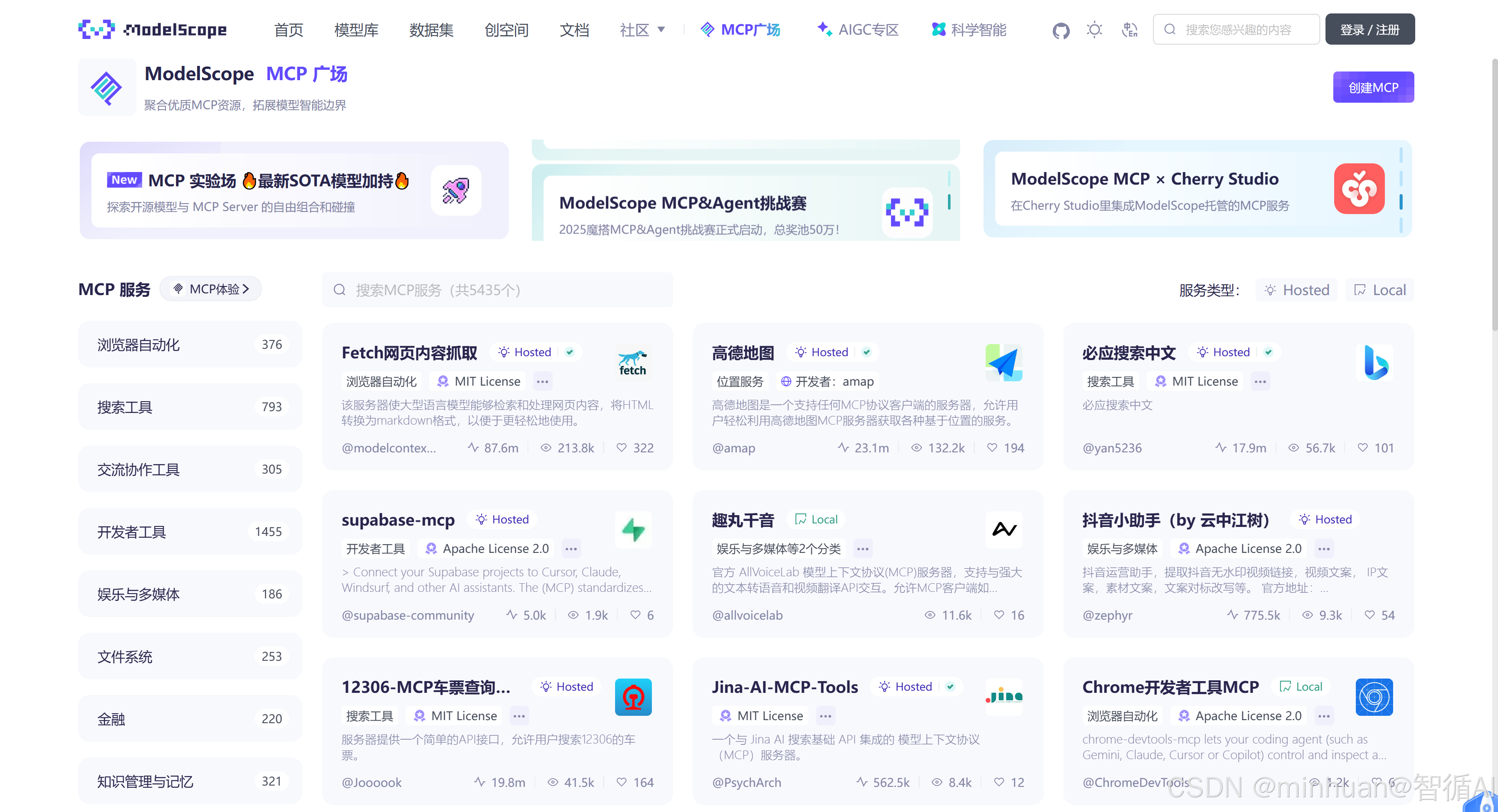 - 官方认证:广场上的 MCP Server 大多经过 ModelScope 团队的审核或认证,在质量和安全性上更有保障。