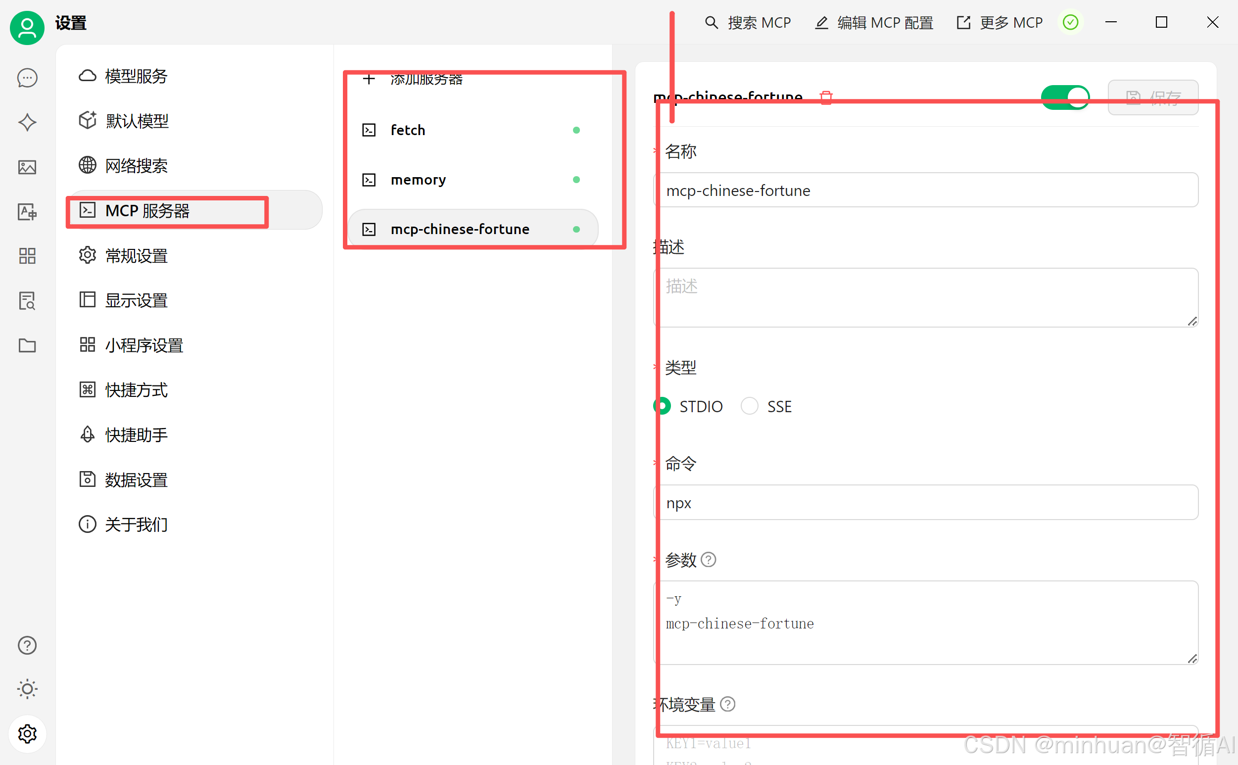 同样也是在【设置】的【MCP服务器】中进行同一管理;