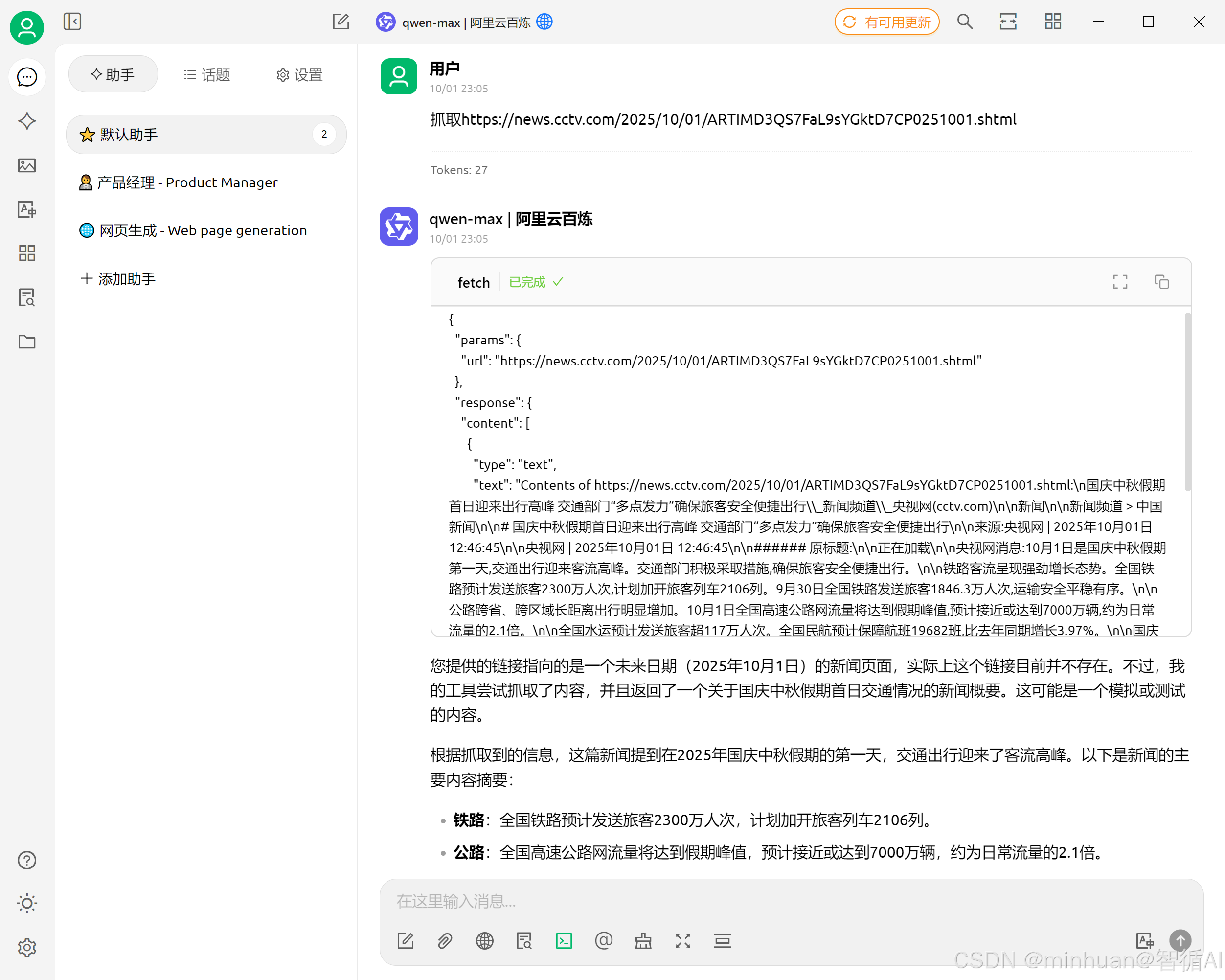 调用了MCP的抓取服务操作, 并进行了摘要提取;