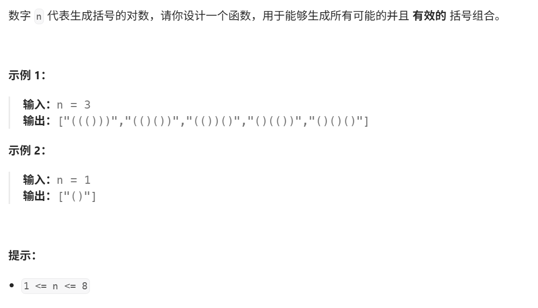 <1>添加左括号。若left<n,将'('加入path,dfs递归处理left+1的后续情况,处理后恢复现场;