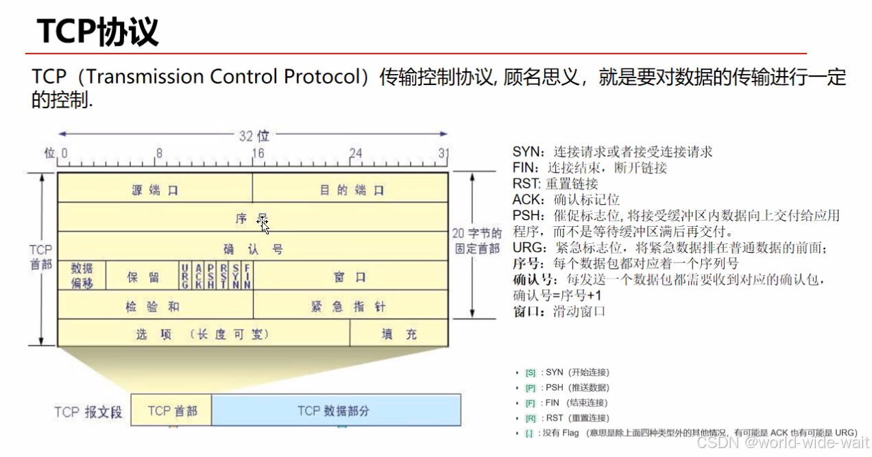 第六列:数据包内容,包含Flags标识符、seq号、ack号、win窗口、数据长度length、更多在TCP协议的标示位。