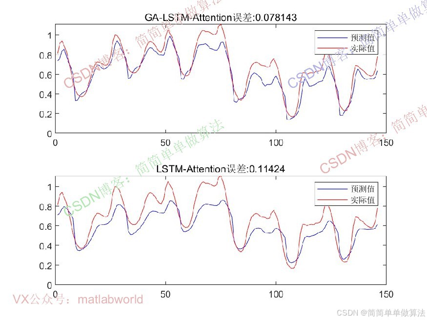 相比传统LSTM,该算法通过Attention机制强化关键时序特征,减少无关信息干扰;通过遗传算法全局优化超参数,避免人工调参的主观性,在长序列、高噪声的一维时间序列(如金融波动、设备振动信号)预测中表现更优。