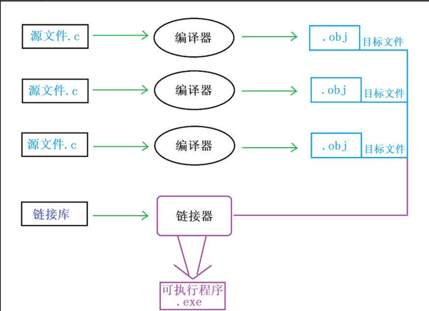 - 下面是从源文件【.c】到可执行文件【.exe】的整体过程