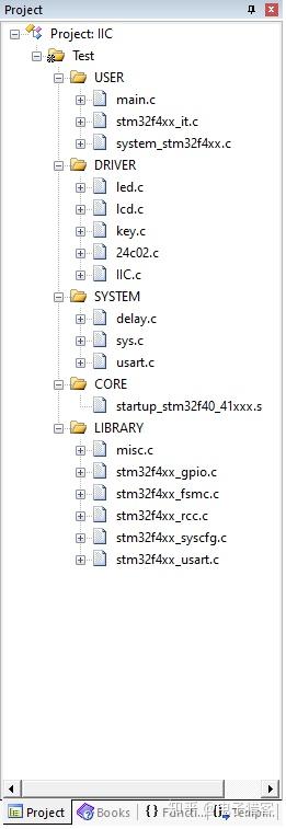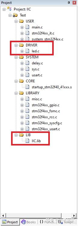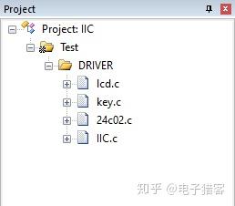 1、先打开一个工程项目,如果DRIVER文件下的lcd.c、key.c、24c02.c和IIC.c这四个文件的源码不想给别人看到的话,就将这些文件进行打包成Lib库,如下图1: