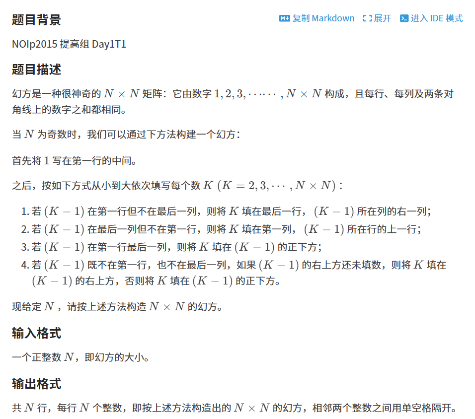 [NOIP 2015 提高组] 神奇的幻方 Java