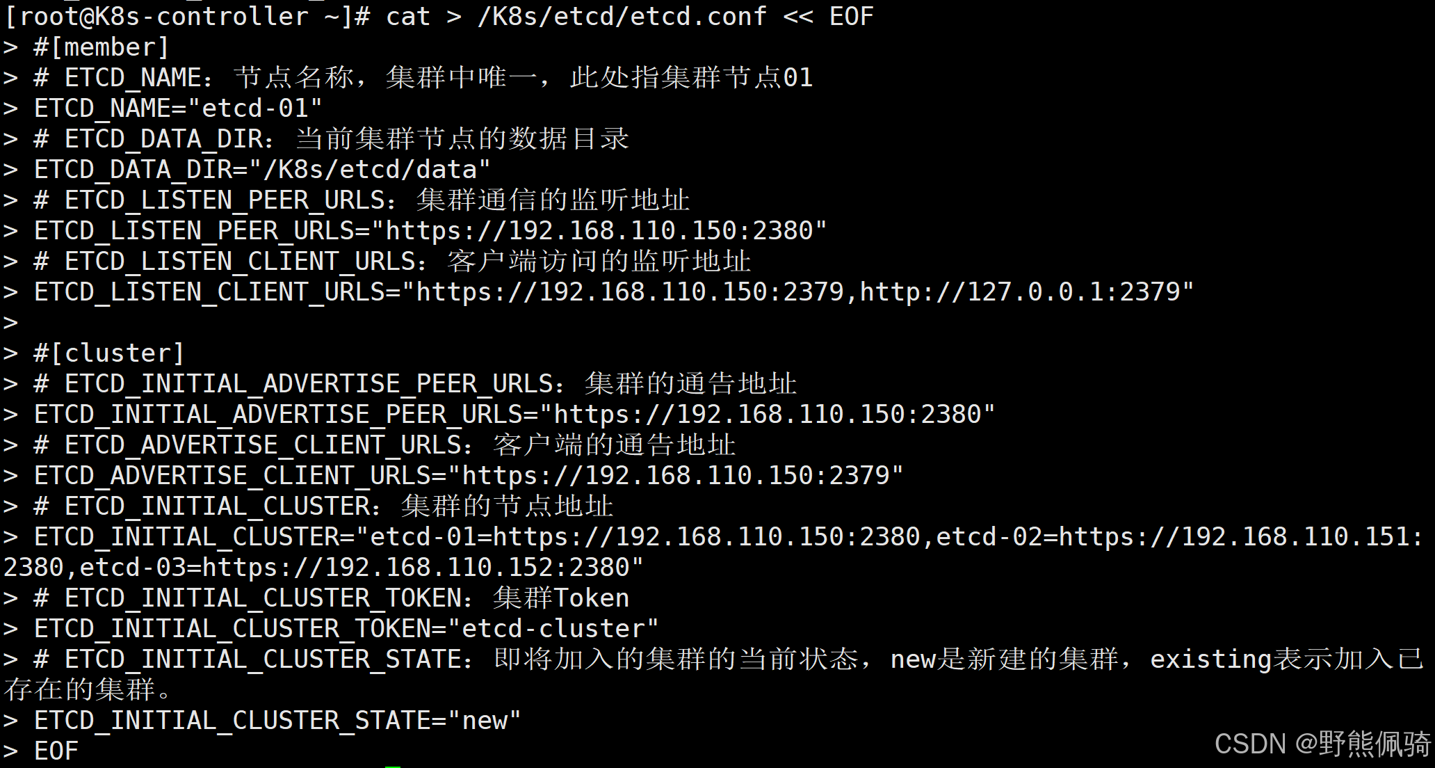 [root@K8s-controller ~]# cat > /K8s/etcd/etcd.conf << EOF