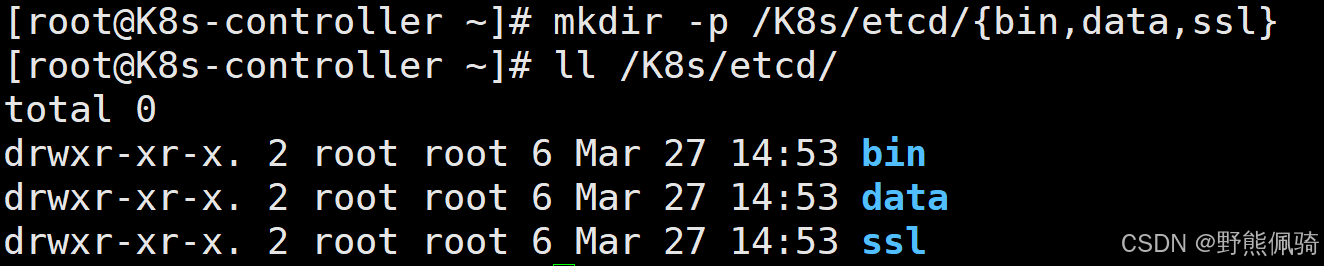 [root@K8s-controller ~]# mkdir -p /K8s/etcd/{bin,data,ssl}
