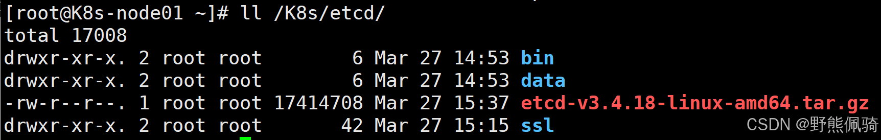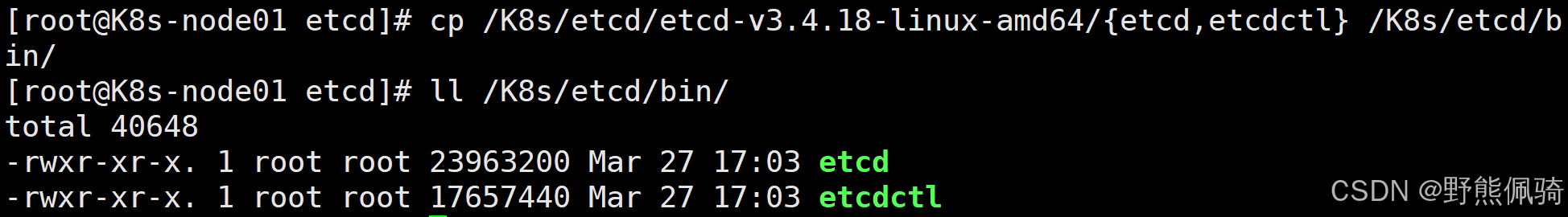 [root@K8s-node01 etcd]# cp /K8s/etcd/etcd-v3.4.18-linux-amd64/{etcd,etcdctl} /K8s/etcd/bin/
