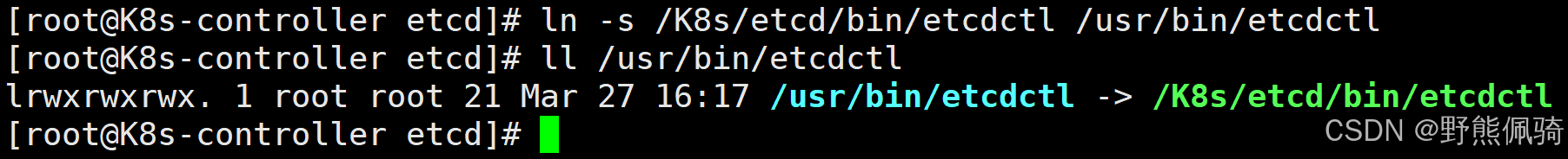 [root@K8s-controller etcd]# ln -s /K8s/etcd/bin/etcdctl /usr/bin/etcdctl