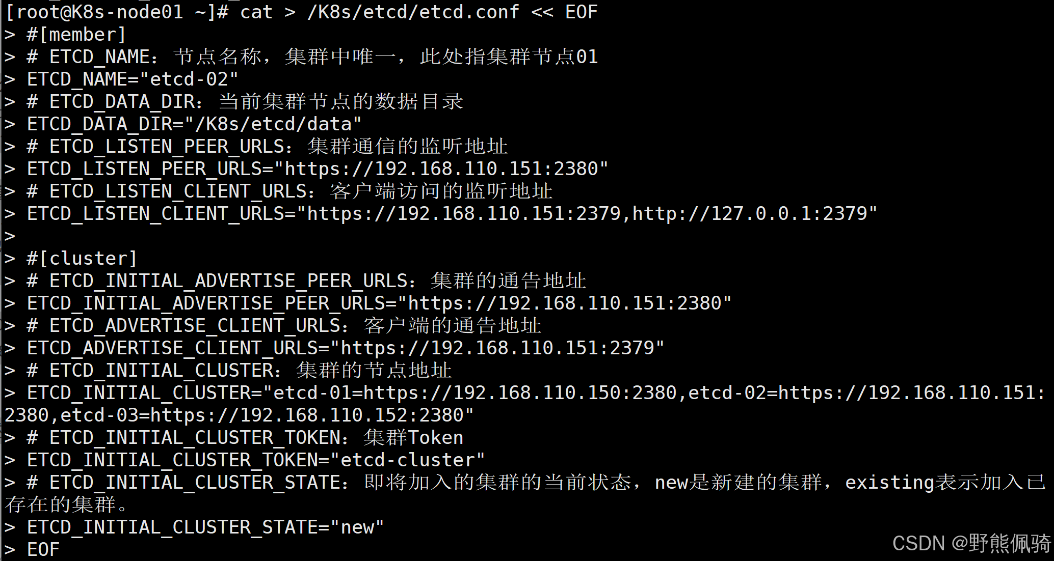 [root@K8s-node01 ~]# cat > /K8s/etcd/etcd.conf << EOF