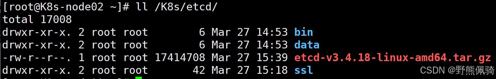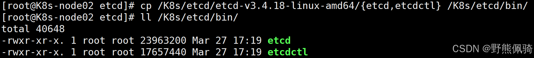 [root@K8s-node02 etcd]# cp /K8s/etcd/etcd-v3.4.18-linux-amd64/{etcd,etcdctl} /K8s/etcd/bin/