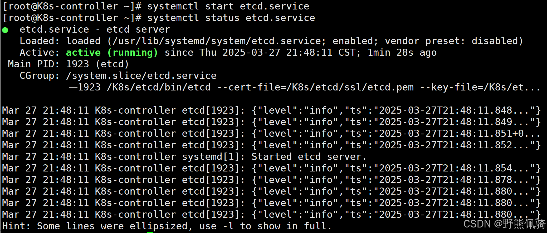 [root@K8s-controller ~]# systemctl start etcd.service
