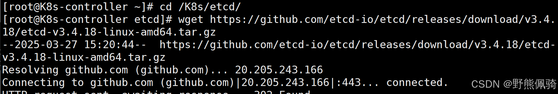[root@K8s-controller etcd]# wget https://github.com/etcd-io/etcd/releases/download/v3.4.18/etcd-v3.4.18-linux-amd64.tar.gz