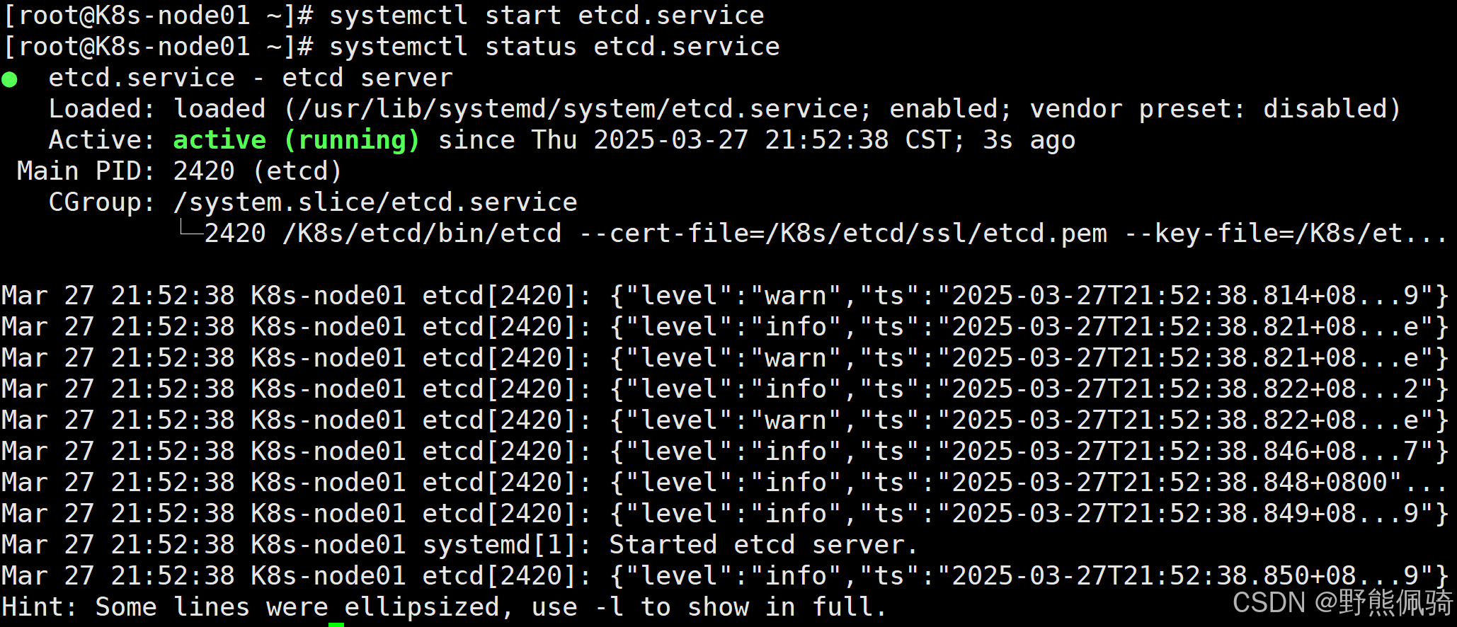 [root@K8s-node01 ~]# systemctl start etcd.service