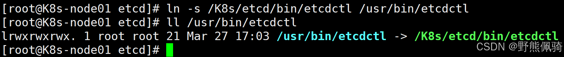 [root@K8s-node01 etcd]# ln -s /K8s/etcd/bin/etcdctl /usr/bin/etcdctl