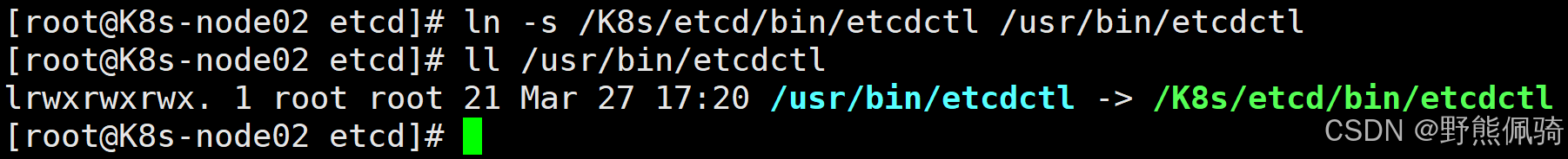 [root@K8s-node02 etcd]# ln -s /K8s/etcd/bin/etcdctl /usr/bin/etcdctl