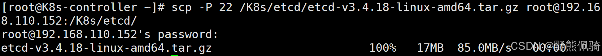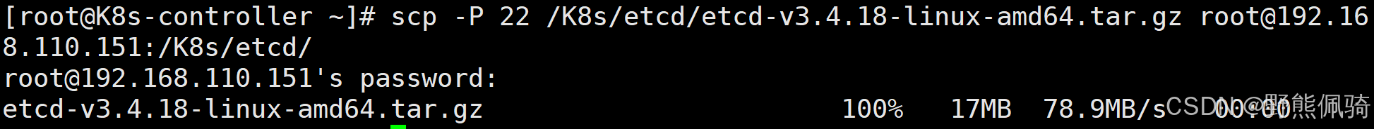 [root@K8s-controller ~]# scp -P 22 /K8s/etcd/etcd-v3.4.18-linux-amd64.tar.gz root@192.168.110.152:/K8s/etcd/